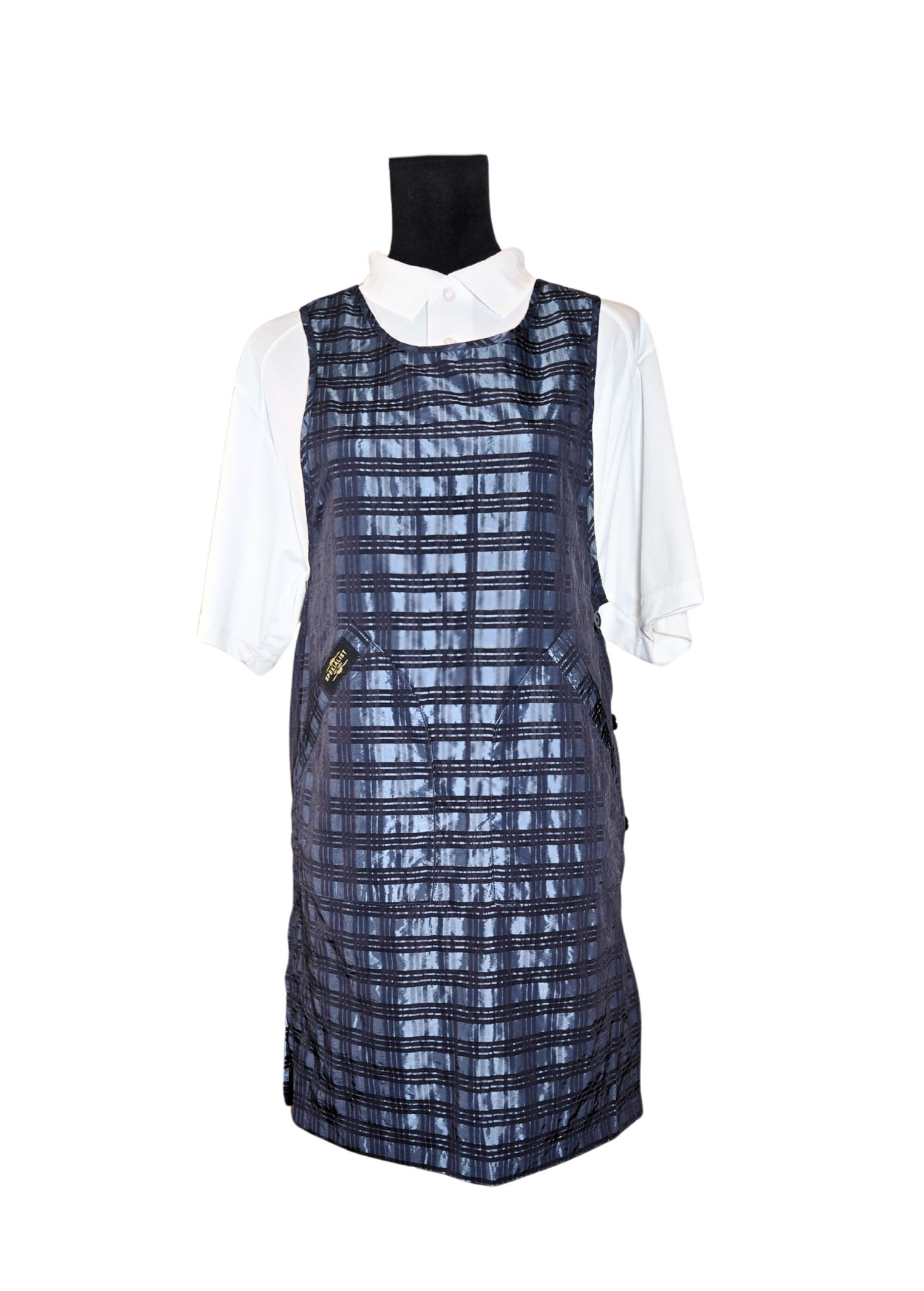 Check pattern Side Button Apron with Pockets.