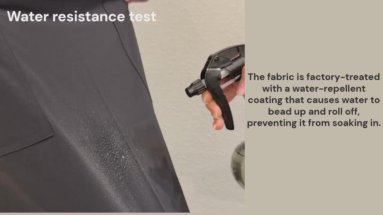 Fabric treated with ANTI-DUST & WATER-RESISTANT finishing.